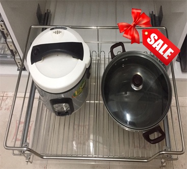 Thiết kế ray trượt sẽ giúp bạn tiết kiệm được rất nhiều sức lực khi lấy và cất đồ. Chỉ cần kéo hoặc chạm nhẹ, giá xoong nồi bát đĩa đa năng tự động đẩy ra và việc lấy đồ của bạn trở nên dễ dàng hơn.